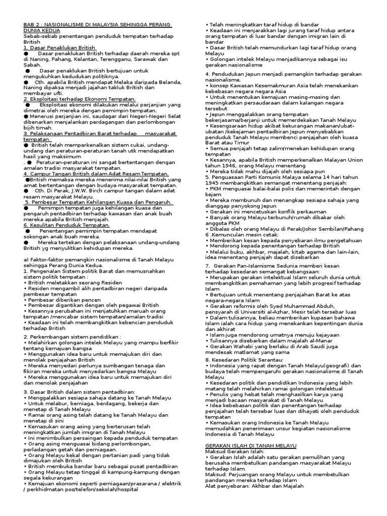 Program ini ditaja penuh oleh kolej antarabangsa ypc/ ypc international college. Kelas online ini tentang bab 2 form 5: Nasionalisme di malaysia sehingga perang dunia kedua 1. Meminta british mengadakan kampung khas melayu di kuala lumpur. Nasionalisme di malaysia sehingga perang dunia kedua (kelas 5 a/t).